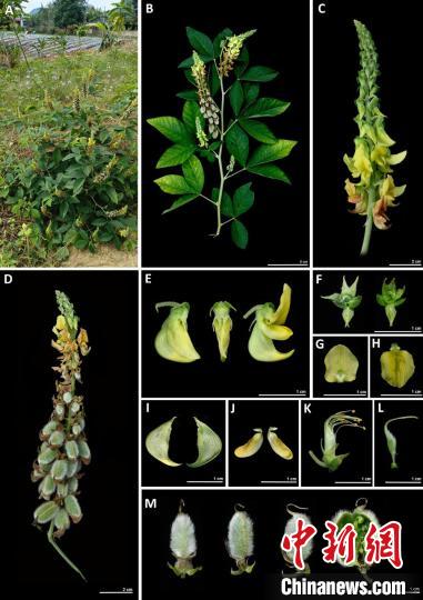据介绍,勐腊猪屎豆由研究组助理研究员Shabir Ahmad Rather博士在云南南部的野外考察中发现。由于该物种首先发现于西双版纳傣族自治州勐腊县,故以其发现地命名为勐腊猪屎豆(Crotalaria menglaensis S.A. Rather)。勐腊猪屎豆与同域分布的圆叶猪屎豆C. incana和毛果猪屎豆 C. bracteata形态特征近似,且同为Incanae组成员,但新种的植株较为矮小,茎枝被白色短柔毛。