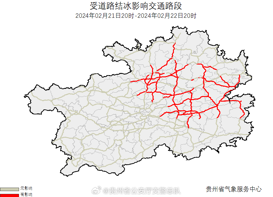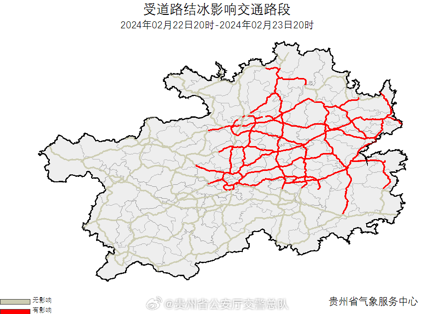 特别关注:遵义东部、铜仁市、黔东南州北部、黔南州北部、贵阳市等的国(省、县)道未来24受小时道路结冰天气影响。