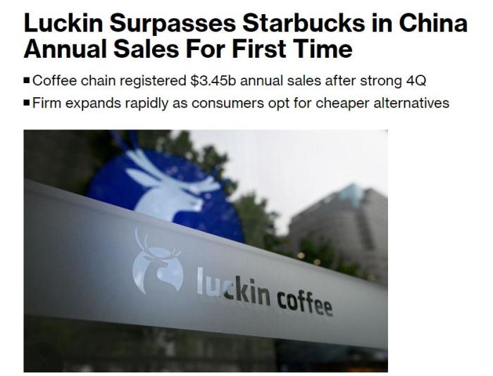 据彭博社报道,中国本土品牌瑞幸咖啡2023年的销售额,首次超过美国咖啡连锁巨头星巴克在中国的销售额,成为中国市场最大的咖啡连锁品牌。
