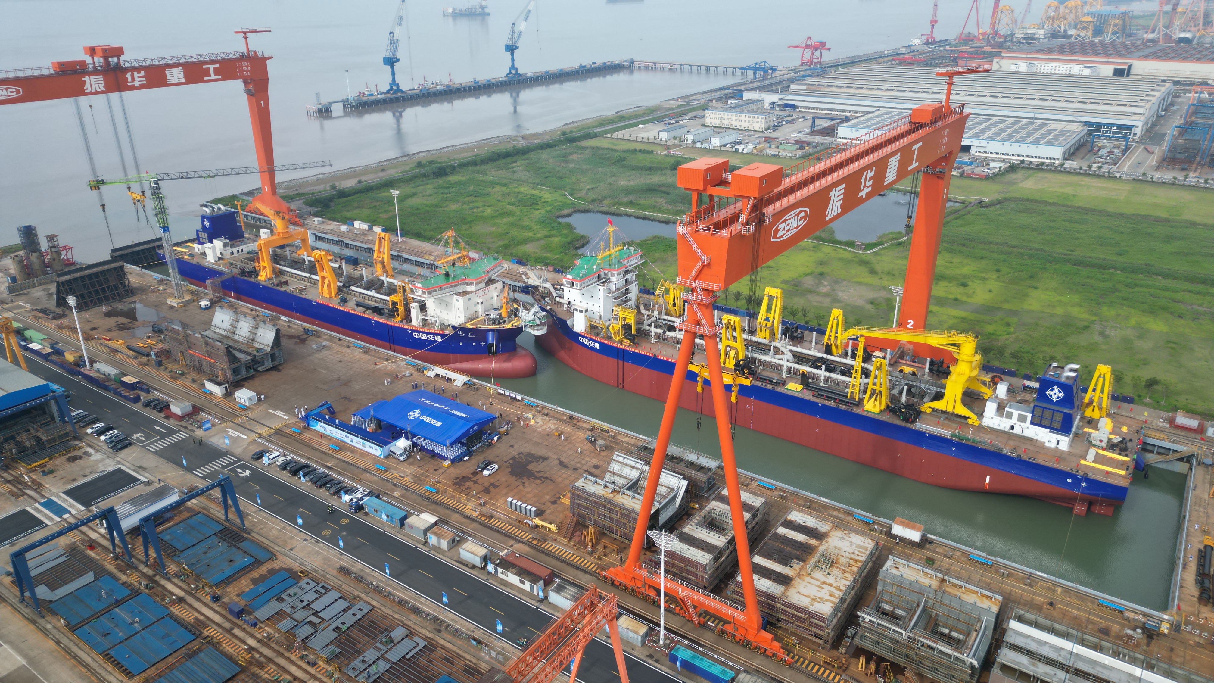 8月26日,我国自主设计研发的“通浚”轮和“浚广”轮在江苏启东成功下水,这两艘35000立方米舱容等级的超大型耙吸挖泥船,一亮相就拿下“亚洲最大”“世界领先”的头衔,堪称疏浚领域的“国之重器”。