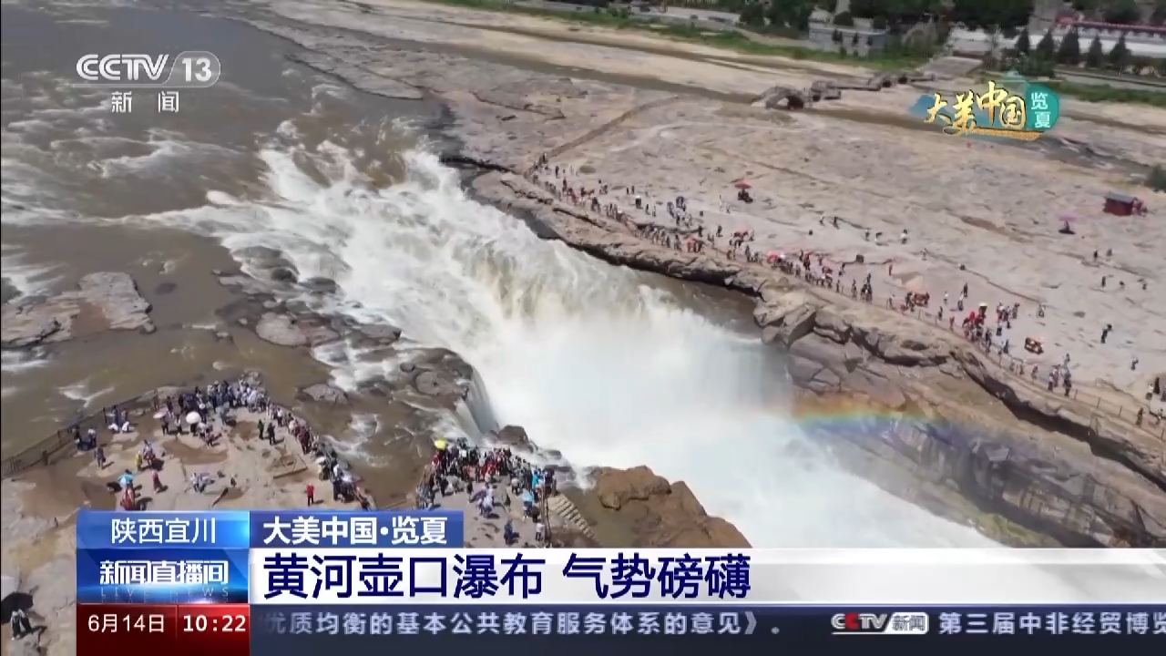 进入夏季,陕西延安宜川县的黄河壶口瀑布水位逐渐上升,水流开始增大,迎来夏季最佳观赏期。
