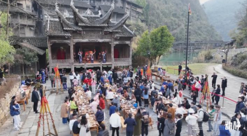 伴着侗族歌声,乌江寨的八方宴开席,游客们正在体验贵州不同民族“高山流水”的敬酒礼仪。入选贵州首批酒旅融合景区一年来,乌江寨国际旅游度假区打造了酱酒文化体验区、主题餐厅,吸引3家酒企入驻,并将贵州酒元素和文化融入到节目演绎中。