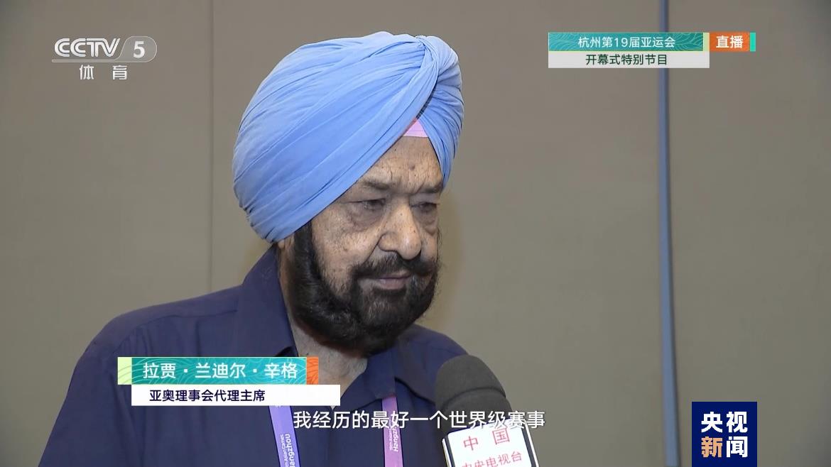 亚奥理事会代理主席辛格在接受本台记者采访时表示,这将是最好的一届亚运会。他说,我亲眼见证了你们的基础设施,亲身感受了市民们对亚运会的热情,志愿者们工作也非常努力,我想对他们所有人说声感谢。祝你们一切都好,享受这届亚洲盛会!