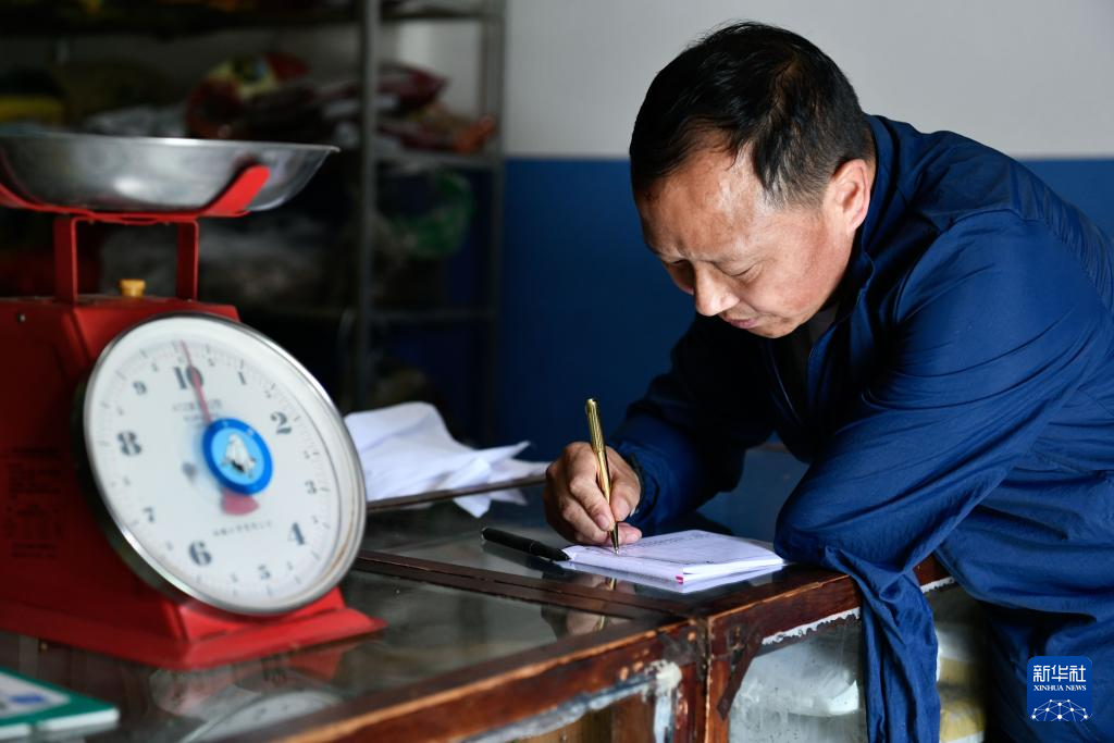 朱大清在村卫生室填写患者病历(7月19日摄)。新华社记者 杨文斌 摄