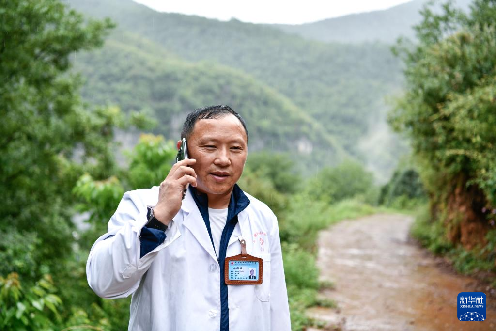 朱大清在出诊途中接听患者电话(7月19日摄)。新华社记者 杨文斌 摄