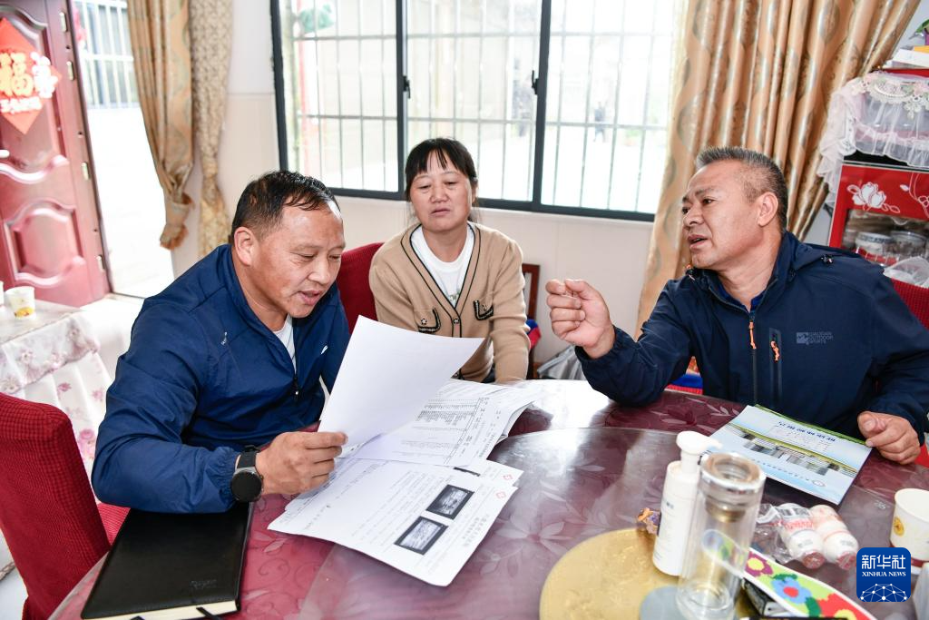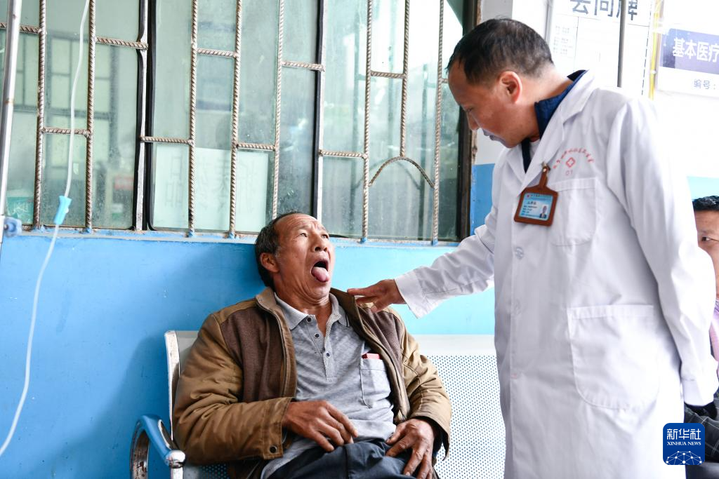 朱大清在村卫生室查看患者身体恢复情况(7月19日摄)。新华社记者 杨文斌 摄