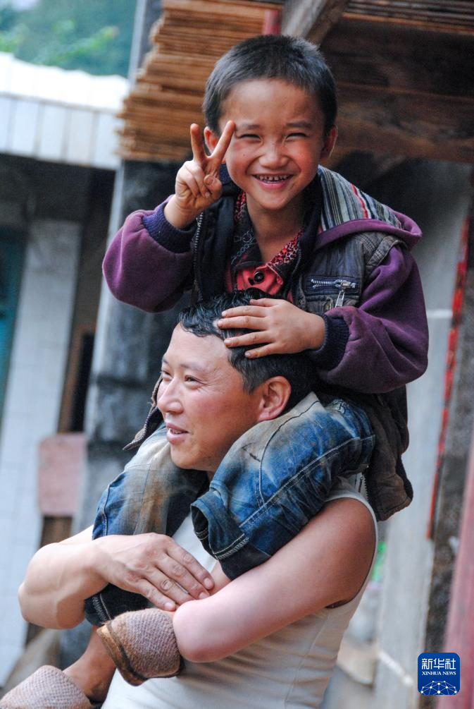 每次出诊回到家,朱大清的侄子都要爬到他肩上玩一会儿(2012年7月4日摄)。新华社记者 杨文斌 摄