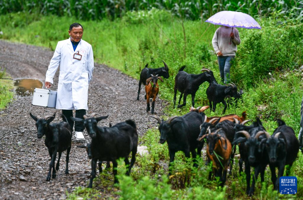 朱大清出诊途中遇到一牧羊人(7月19日摄)。新华社记者 杨文斌 摄