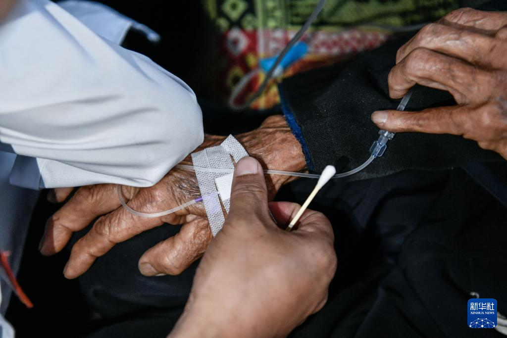 朱大清登门给患者输液(7月19日摄)。新华社记者 杨文斌 摄