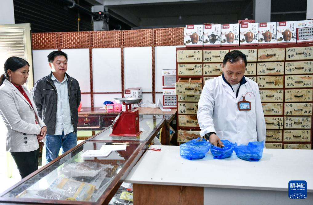 朱大清(右)在中药房给患者抓药(7月19日摄)。新华社记者 杨文斌 摄