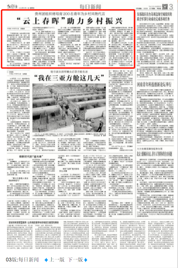 团贵州省委此次发起的“云上春晖”活动,旨在通过培训赋能、带货竞技、文化整理的方式,培育一批高素质的乡村青年代言人、带货人,积极宣传贵州乡村文化、展示贵州乡村风貌、讲述贵州乡村故事、推介贵州乡村产品。