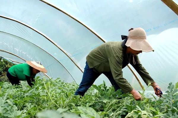 杨通令说,种西瓜每天都要给大棚“放风”,让棚内保持适宜的温度,还要定期给西瓜秧进行掰叉子、除草、采摘西瓜,平时的田间管理,需要十几名工人。在用工方面,杨通令优先考虑附近村民,只要愿意干,他都会给他们提供就业机会。