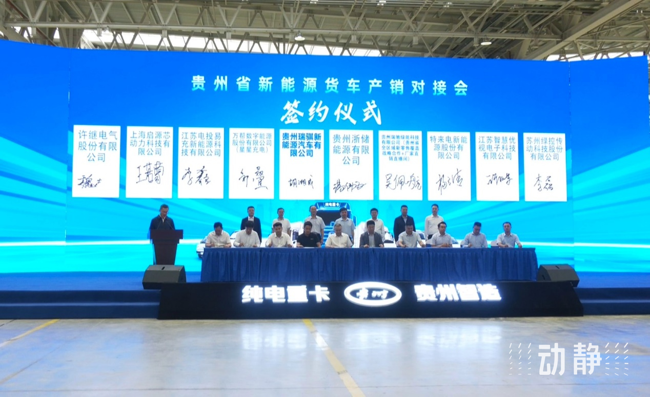 6月25日,以“电动贵州·绿色黔行”为主题的贵州省新能源货车产销对接会在贵安新区举行,现场签订500台“贵州牌”纯电动重卡采购协议。