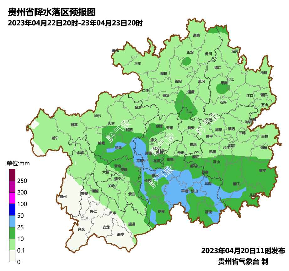 据贵州省气象台预计,4月20日至23日,我省多阵雨和雷雨天气,局地有风雹、短时强降水等强对流;22日到24日,受冷空气影响,我省气温自东北向西南先后明显下降,到24日,我省大部地区最高气温降至15℃以下。