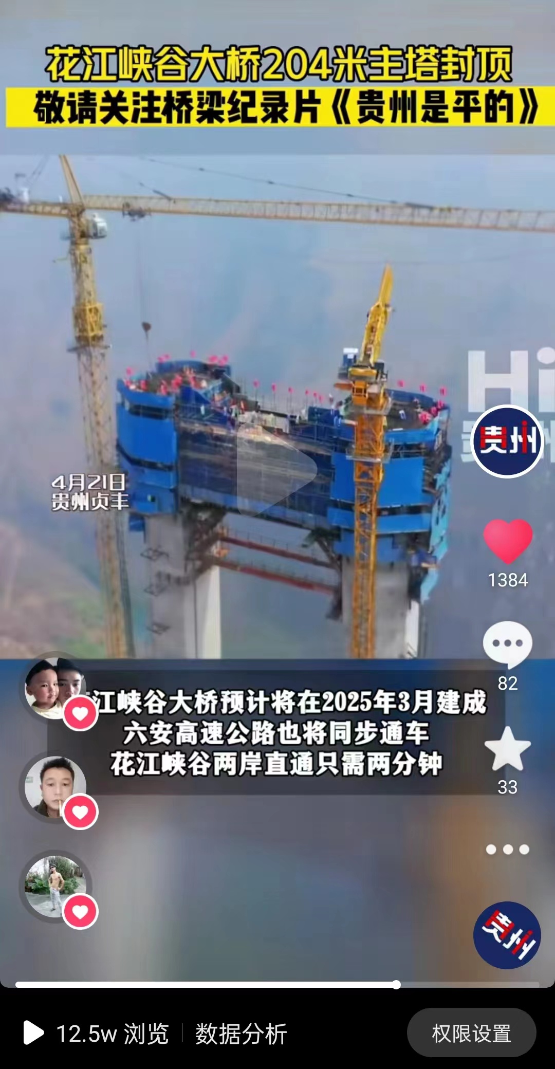 据了解,导演组现已完成了北盘江大桥、花江峡谷大桥的拍摄。从中体会到了建桥人的拼搏、护桥人的坚守……充分感受到当地“桥修了、路通了、人多了、百姓富了”的深刻变化,以及桥旅融合为桥下人家带来的幸福生活。