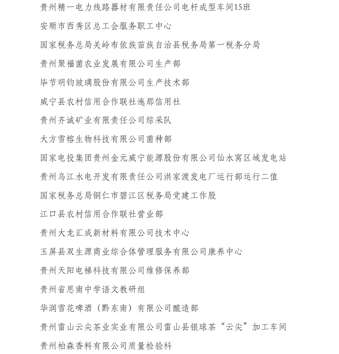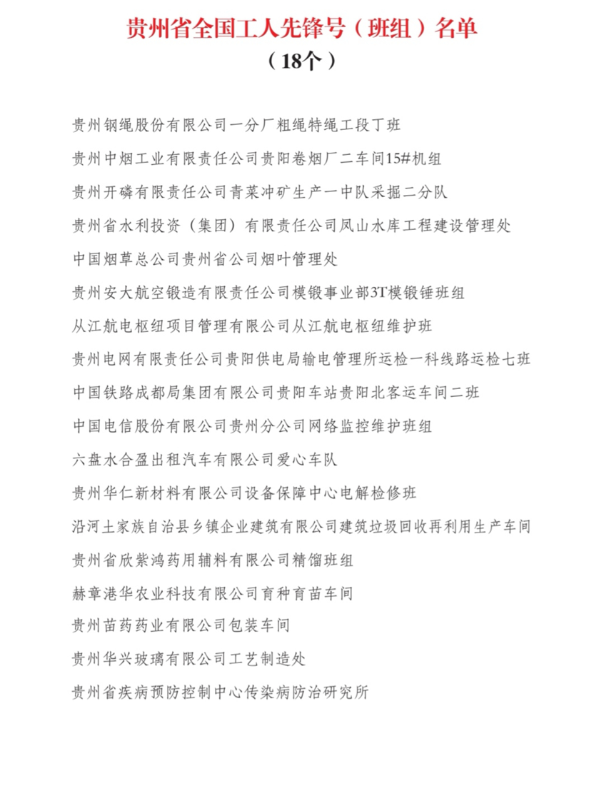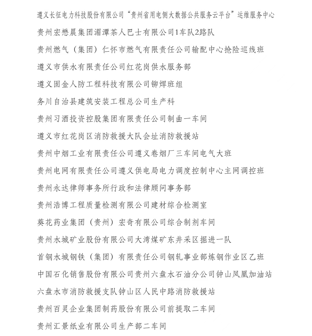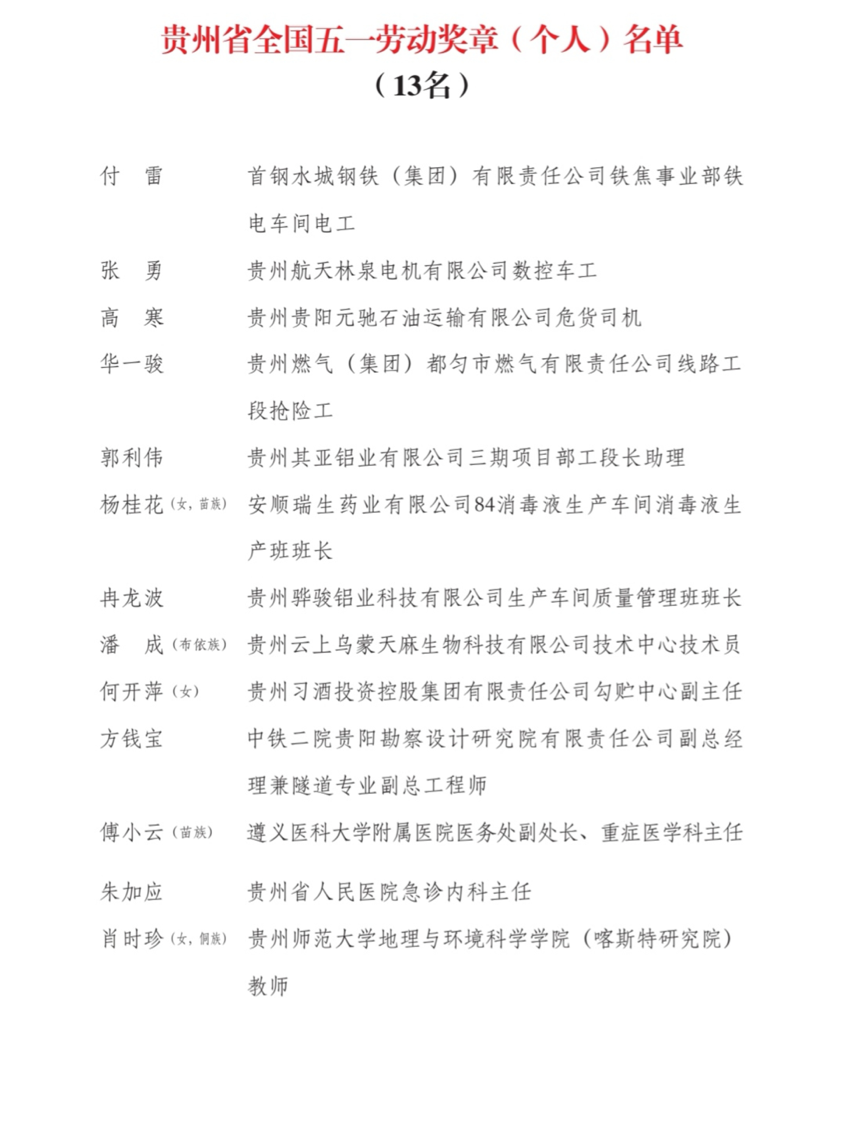 大会为毕节市消防救援支队等4个单位颁发了全国五一劳动奖状,付雷等13名职工颁发了全国五一劳动奖章,贵州钢绳股份有限公司一分厂粗绳特绳工段丁班等18个集体颁发了全国工人先锋号。