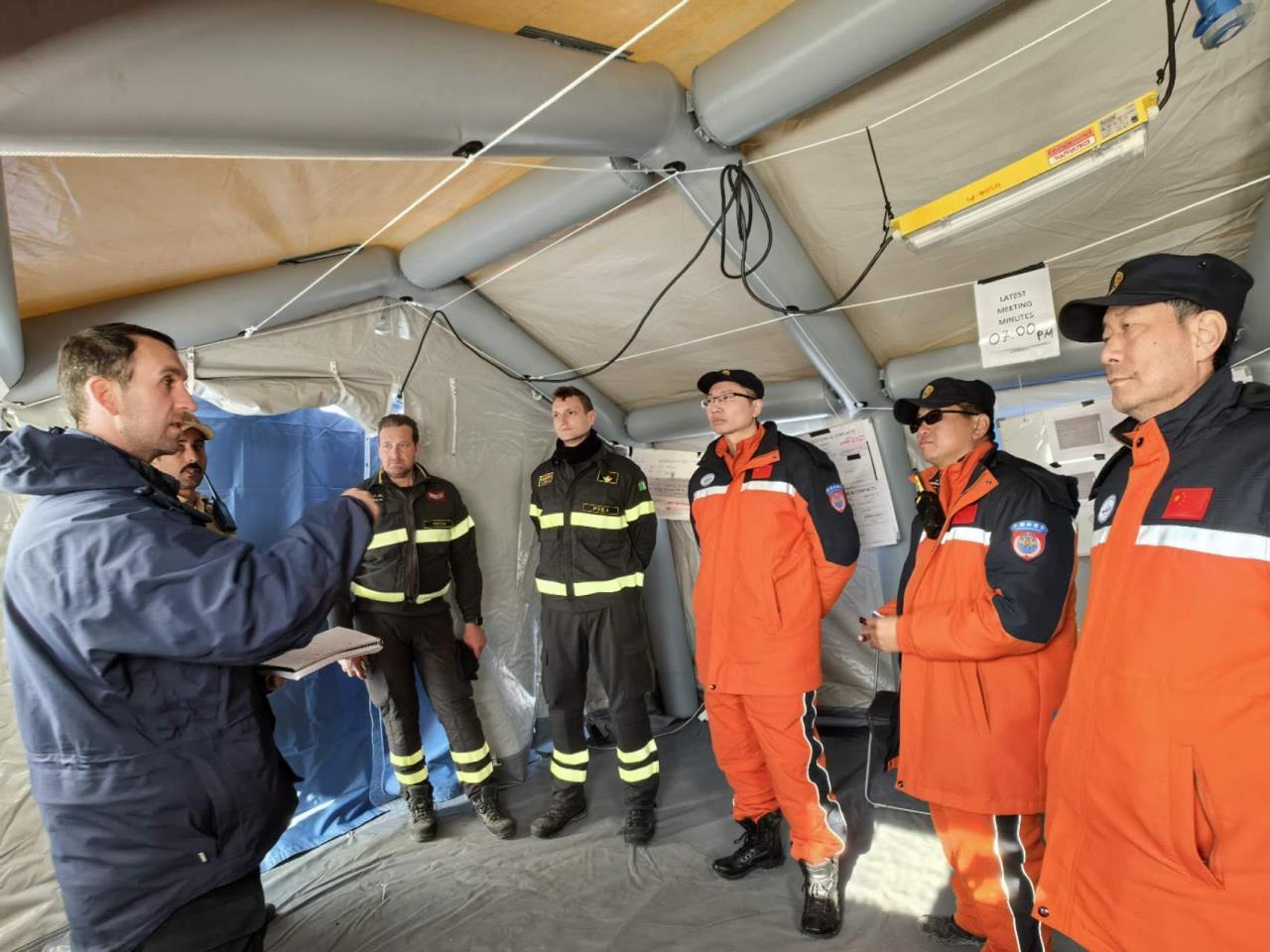此外,中国救援队积极对接各国救援力量,强化对外交流,并继续完善营区信息通信、后勤和医疗保障工作。救援队协调联络组先后走访了波黑、巴林、阿曼、英国、意大利等救援队营区,了解了各队伍基本情况,沟通了救援行动最新进展。此外,协调联络组持续协助运行联合国第五区域救援队伍协调中心。