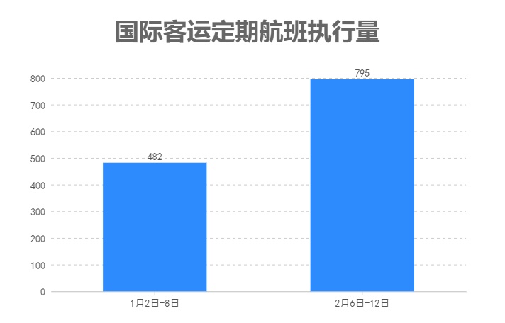 从上周(2月6日—12日)实际执行的航班情况来看,我国已经恢复与58个国家间的客运定期航班,98家中外航空公司共执行795班,比“乙类乙管”政策发布前一周(1月2日—8日,482班)增长65%。