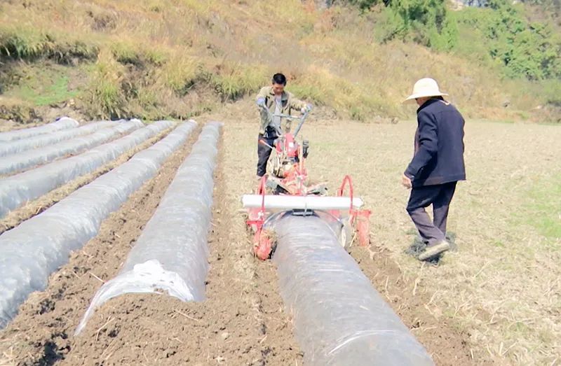 在永和镇鱼塘村白沙基地,烤烟种植大户安永权正带着工人们忙着施肥、覆膜、开沟渠等,为下一步烤烟种植做好准备。