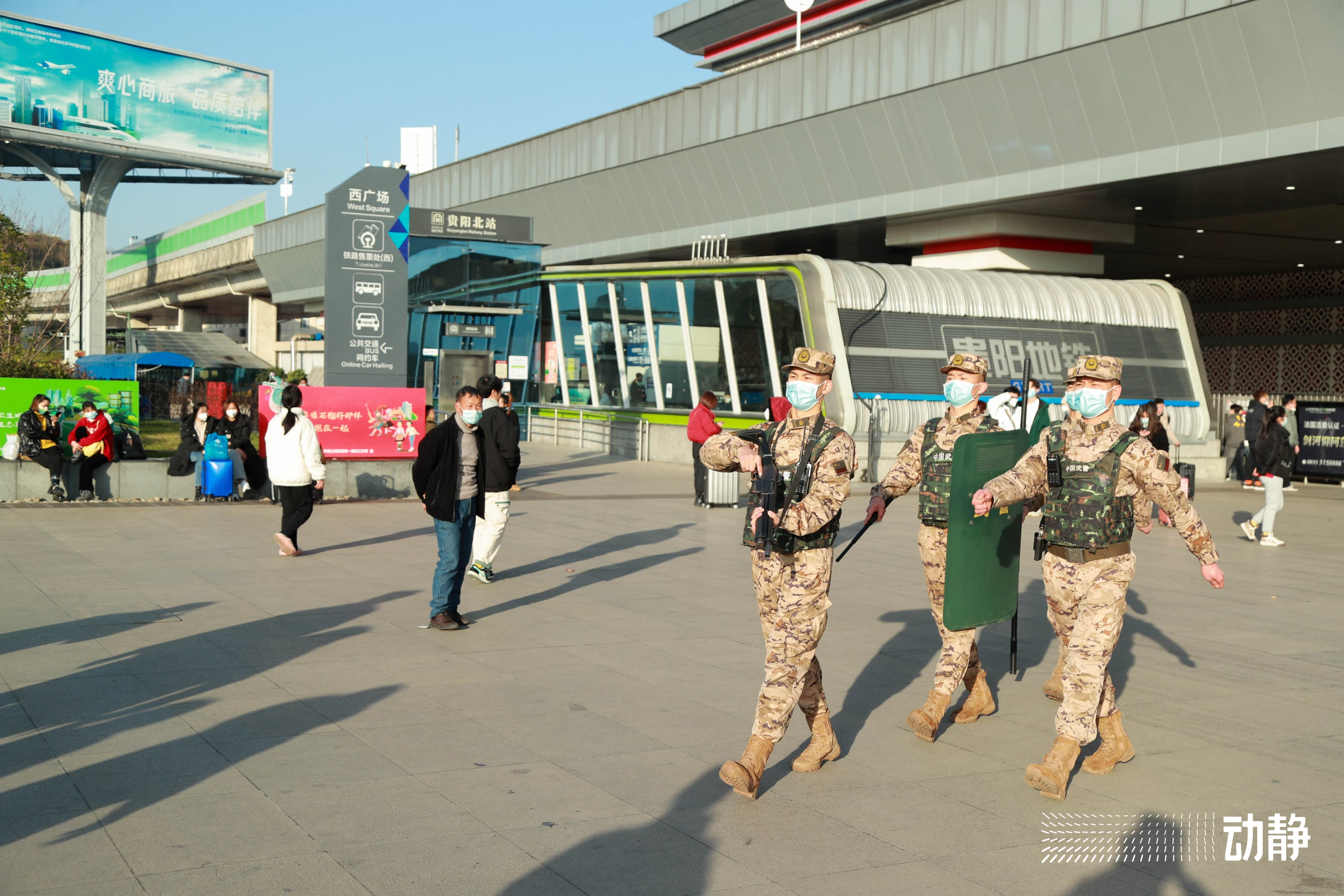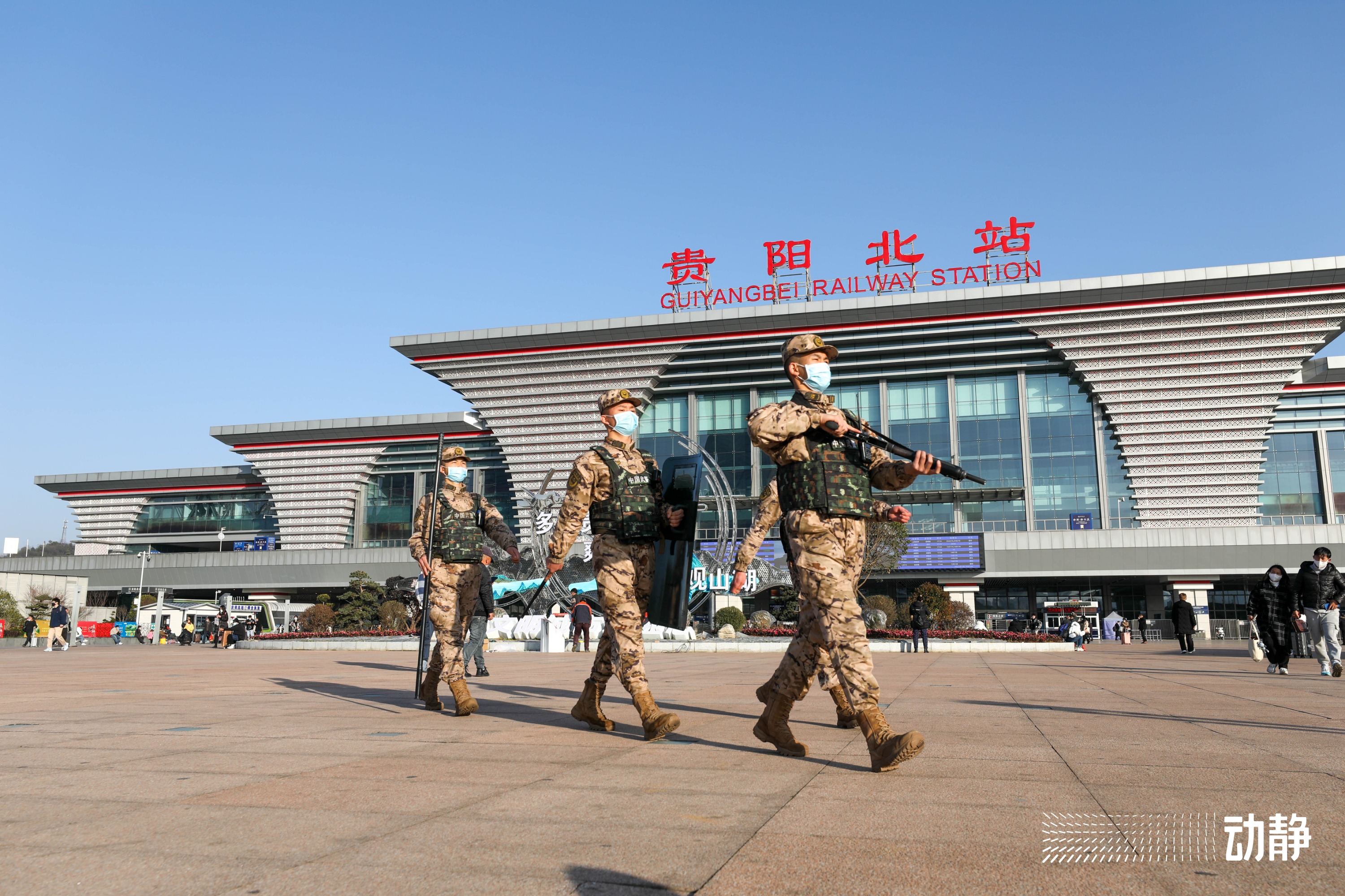 2023年春运今日(1月7日)正式启动,武警贵州总队贵阳支队针对春运期间客流量较大的实际情况,采取定点警戒、徒步巡逻与乘车巡逻相结合的方法,加强对龙洞堡机场、贵阳高铁北站、汽车站等重要交通枢纽的兵力部署,确保遇有突发情况能迅速到位、高效处置,用实际行动守护旅客平安出行,安全地踏上返乡路。