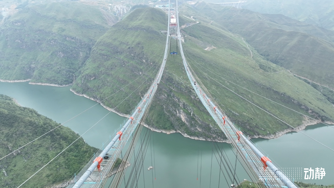 据了解,牂牁江大桥位于乌蒙山国家地质公园内,横跨牂牁江,全长1849米,主桥结构形式为双塔单跨钢桁梁悬索桥。大桥主跨长1080米,桥面距离江面最高距离为380米,桥梁高度在世界百座高桥中排名第11位。