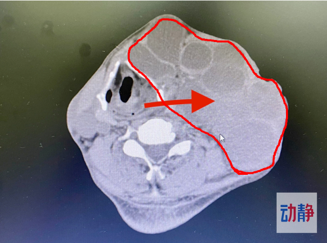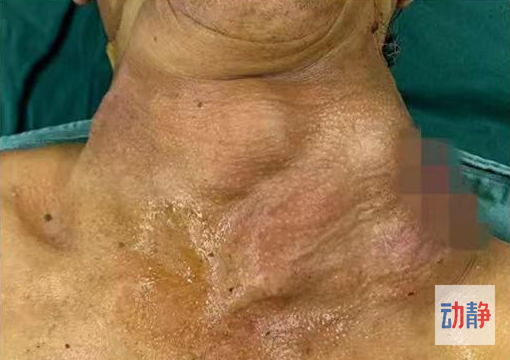 据了解,患者杨先生今年53岁,10年前经检查发现左侧颈部长了一个由多个甲状腺结节形成的包块,但他一直认为问题不大,没有引起重视。2021年底,杨先生发现前包块逐渐增大,并且穿破皮肤发生溃烂,流血不止。今年1月,杨先生进而出现了声音嘶哑说话困难的症状,他才开始辗转于当地多家医院求诊,一直未被明确病因。