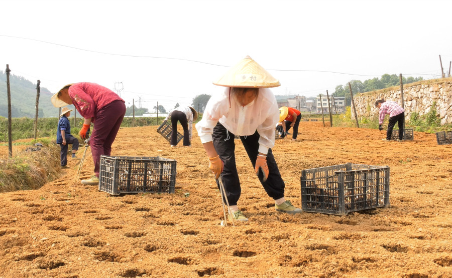 初夏时节,大树林村200亩生姜种植已迎来尾声,基地里正在忙着种植生姜的工人都是来自附近的村民。