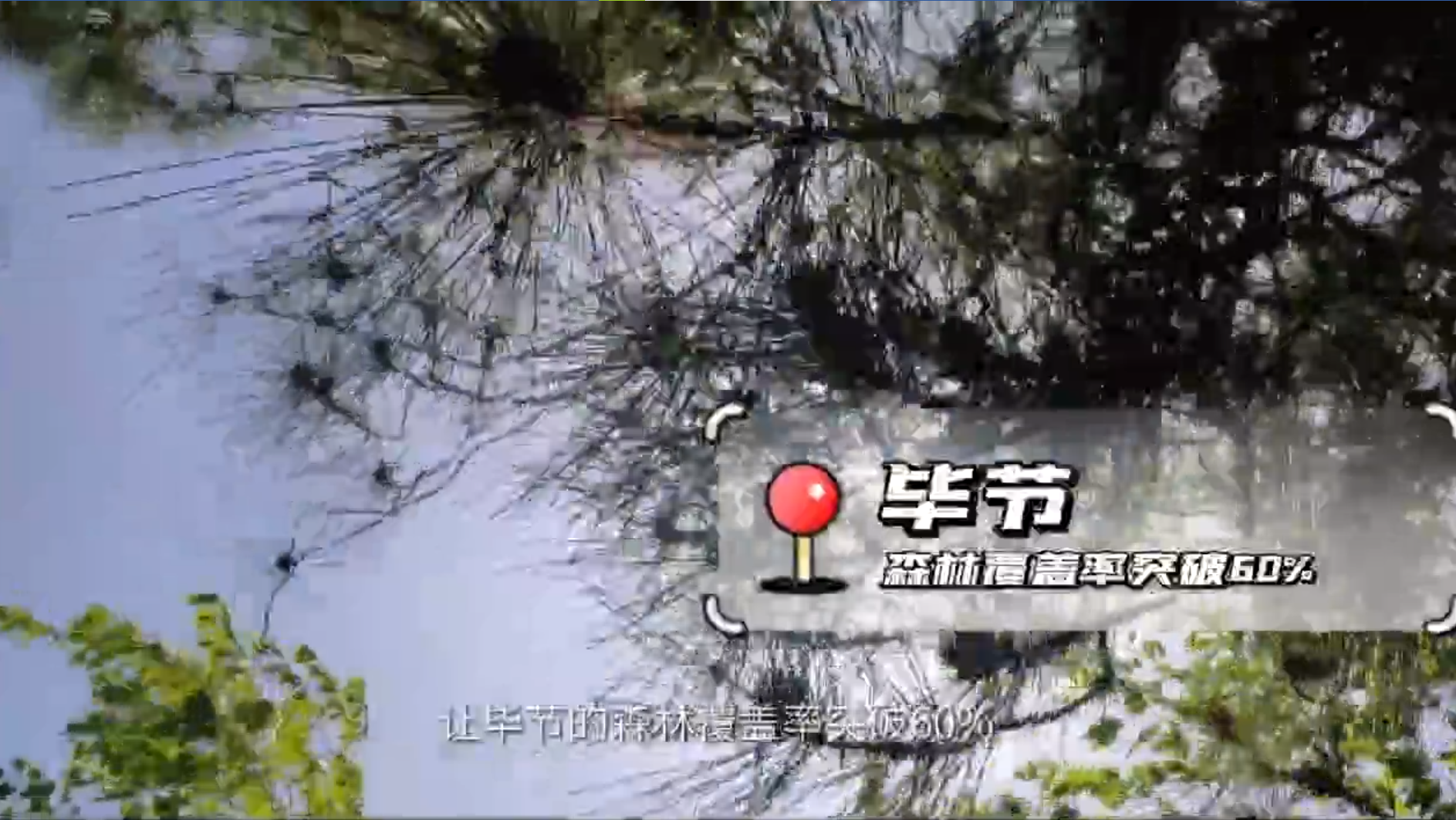 许蕾:“山林间满目青翠,是不是很养眼呀?五年前,这片林子还没有这么茂密。当时,我们黔西的森林覆盖率刚超过50%,石漠化面积约771.3平方公里。多年来,毕节把生态建设放在了首位,大规模推进国土绿化工程和两江上游生态保护修复工作,让毕节的森林覆盖率突破60%。”