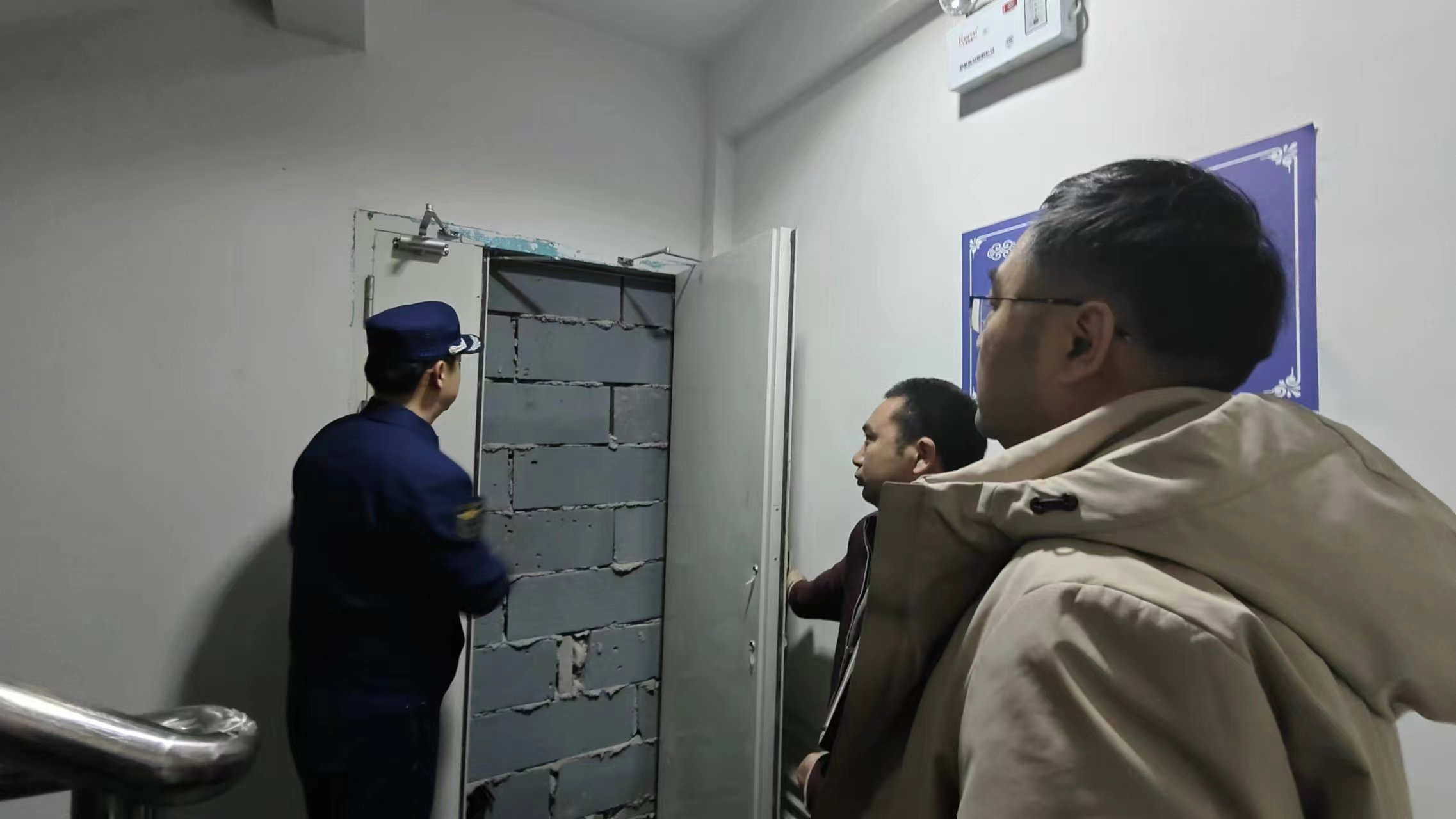 消防隐患:一处安全出口砌墙,存在封闭安全出口的问题。