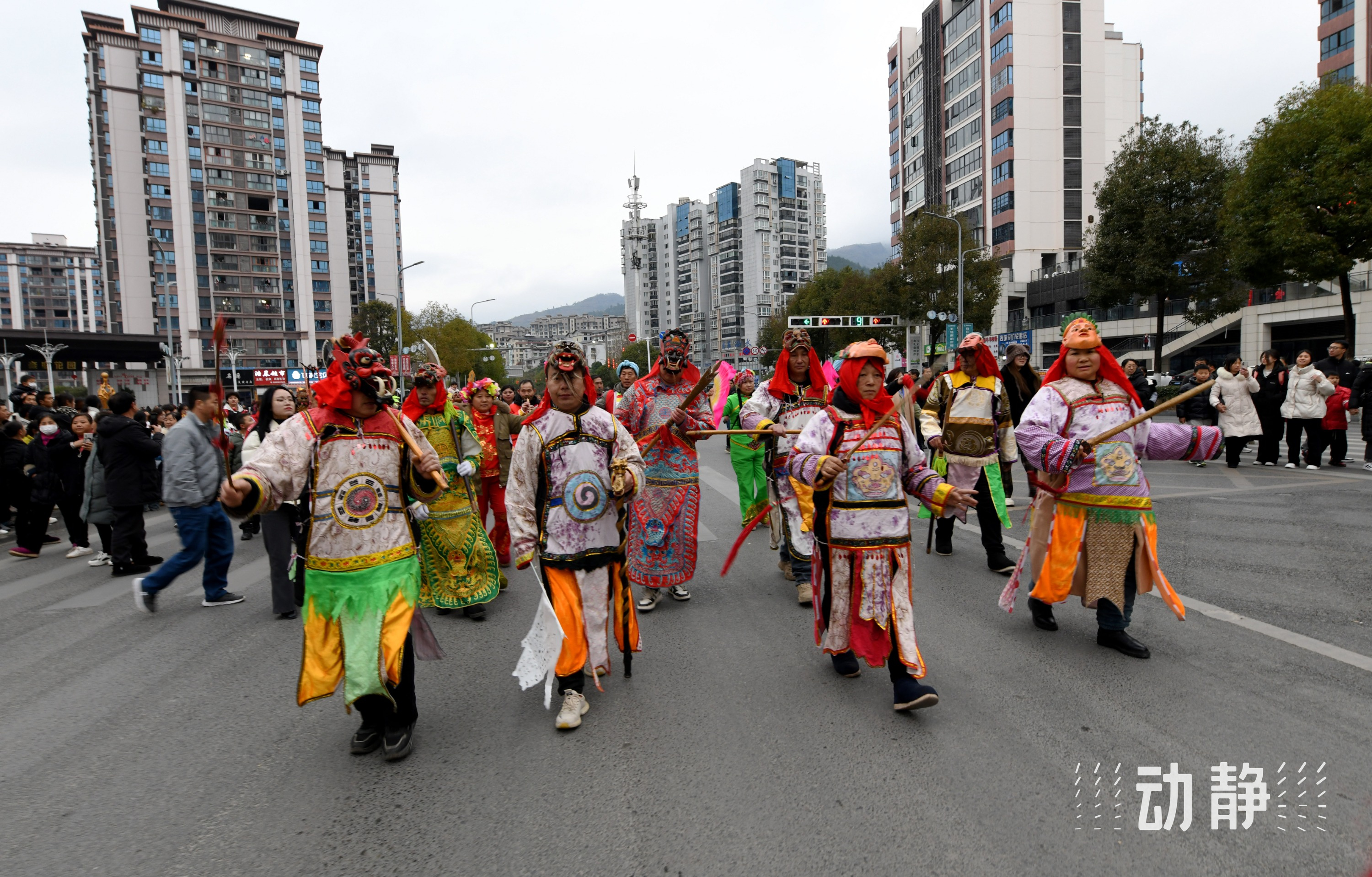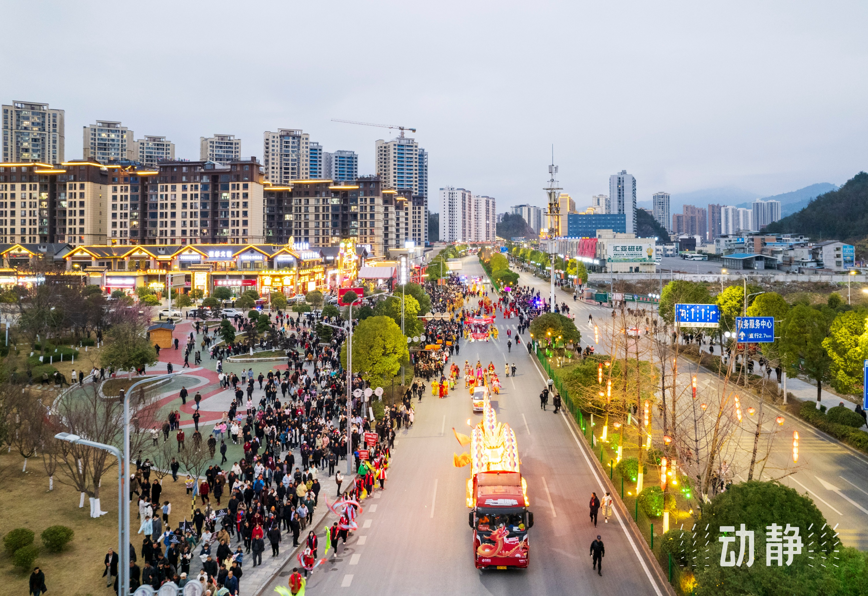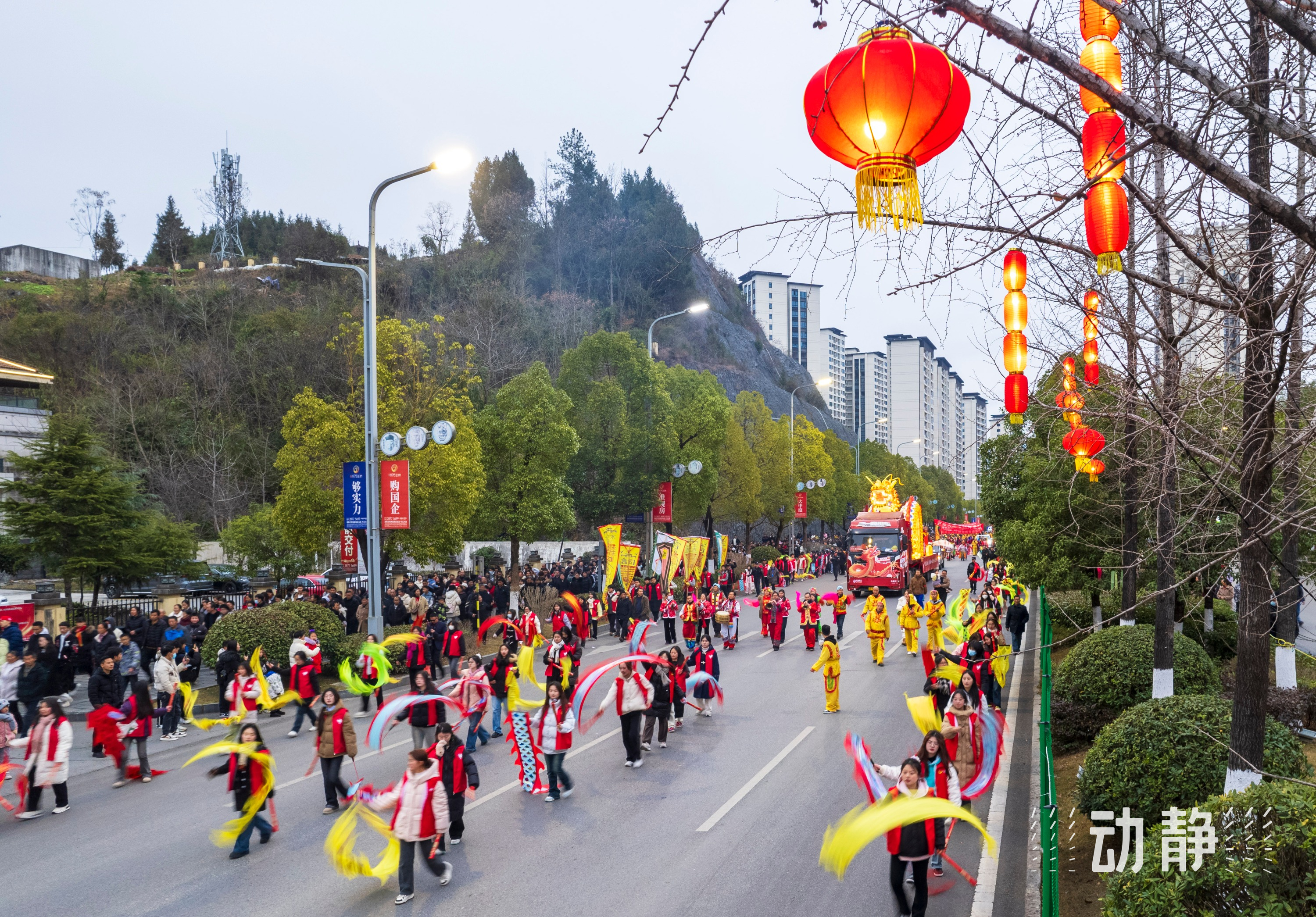 正月十五元宵节,遵义市道真仡佬族苗族自治县举行“非遗过大年·家乡的年味”元宵系列活动,来自尹珍街道和上坝乡的3支舞龙队在县城银杉广场、县城主干道、中华仡佬园巡游表演,同时举行打铁花、烟花秀等活动,热闹过元宵。