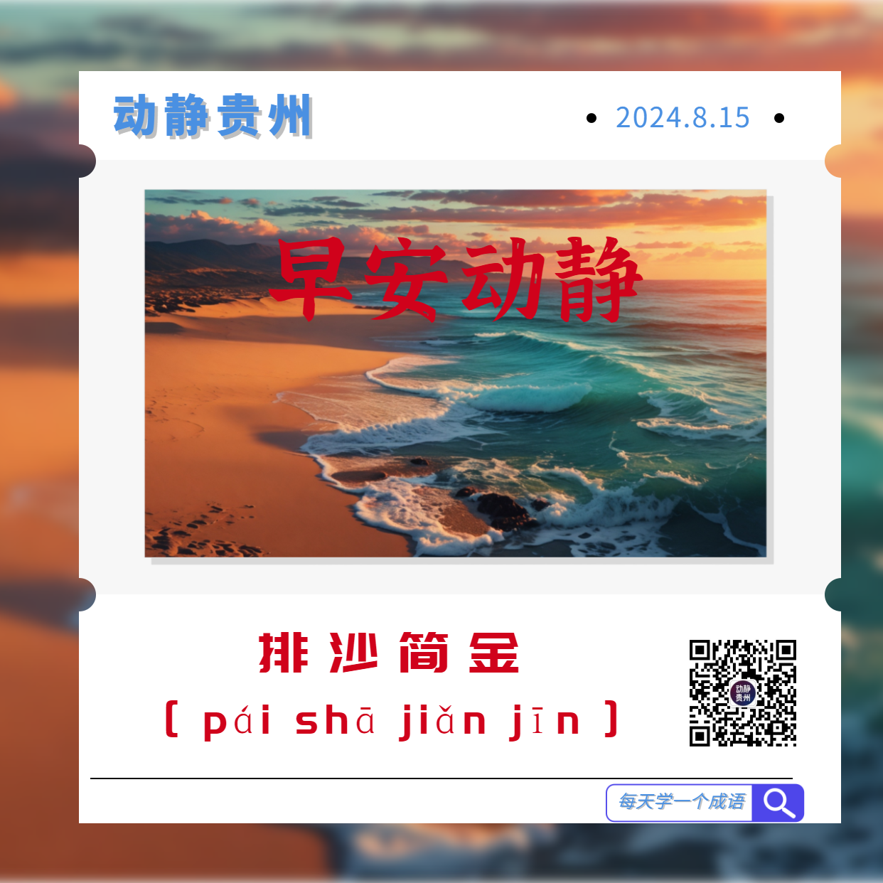 释义:排:除去;简:选取。拨开沙子来挑选金子。比喻从大量的东西中选取精华。