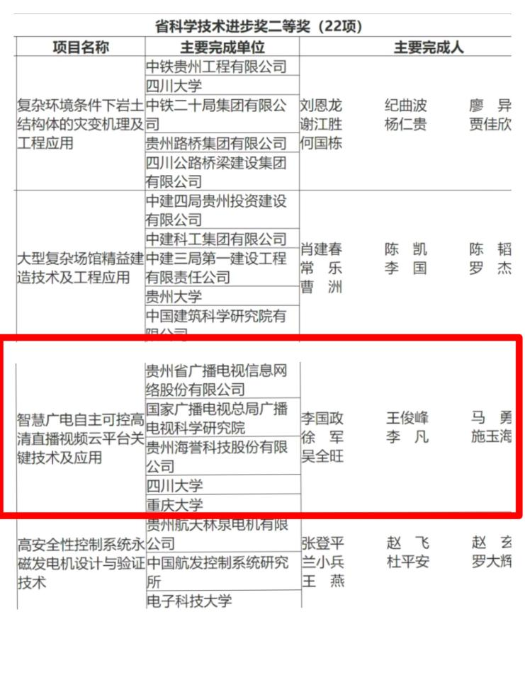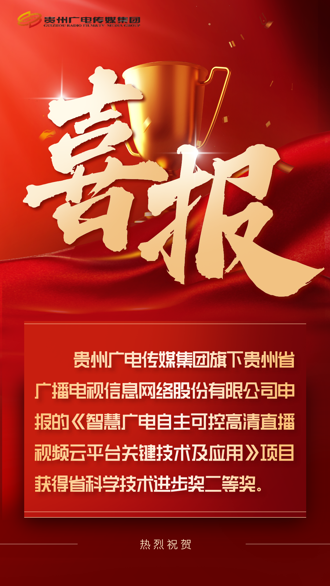 近日,贵州省人民政府公布了2023年度贵州省科学技术奖名单,贵州广电传媒集团旗下贵州省广播电视信息网络股份有限公司申报的《智慧广电自主可控高清直播视频云平台关键技术及应用》项目获得省科学技术进步奖二等奖。