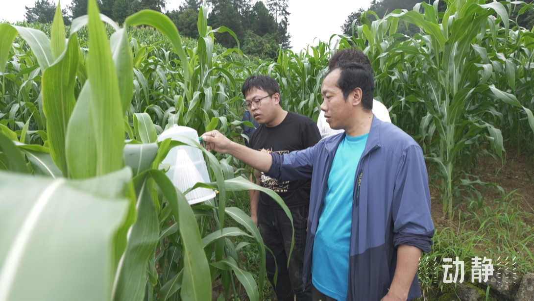 这段时间进入高粱抽穗的关键时期,在仁怀市坛厂街道关田社区的红樱子高粱示范基地里,贵州大学的专家团队正进行病虫害的绿色防控。