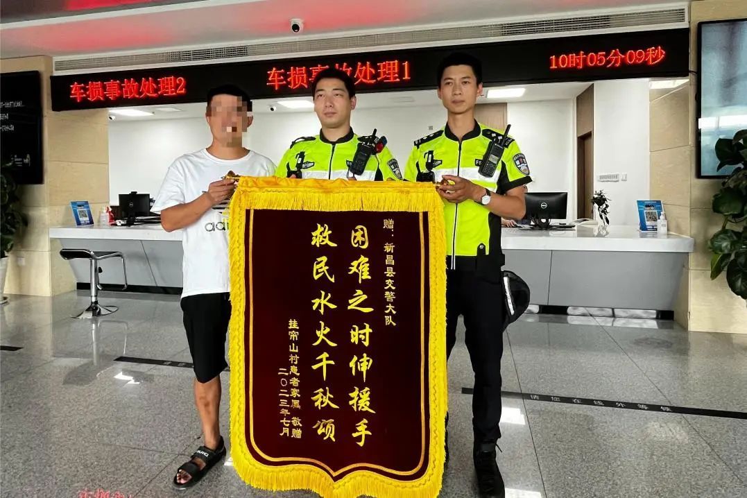 赶到新昌县公安局交警大队表示感谢