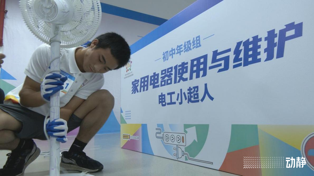 在“电工小超人”竞赛现场,参赛学生分工协作,将一个小型家用电风扇拆卸检查维护后再次组装。榕江县第二中学参赛学生吴德立说:“劳动是幸福生活的重要组成部分,我们通过这次竞赛增强了动手能力,提升了安全使用电器的意识。”