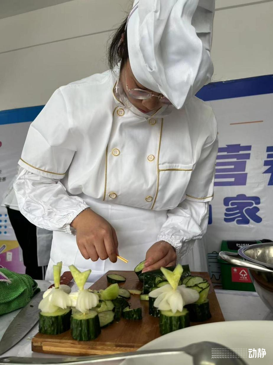 在“美食小当家”竞赛中,参加烹饪的学生身着厨师服,一丝不苟地洗菜、切菜、配菜。“天下粮仓”项目中,各参赛队伍先辨认五谷,通过各式称量工具准确称出任务所需物品,最后再合理用运输工具运至指定地点。