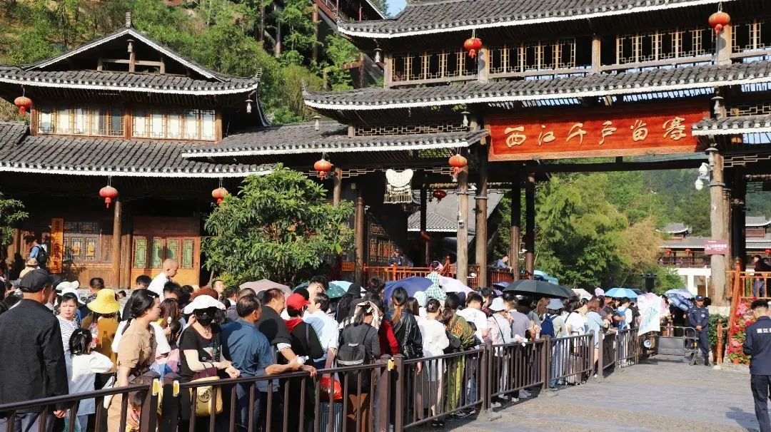 “村BA”“村超”持续火爆,带动了贵州黔东南的旅游热度。在西江千户苗寨景区,暑假期间来自省内外的游客络绎不绝,一排排旅游大巴把停车场“塞”得满满当当。景区内人头攒动,看建筑、品美食、享民俗,身着苗族服饰在观景台上留下倩影,游客们在这里尽情放松身心,享受夏日时光。