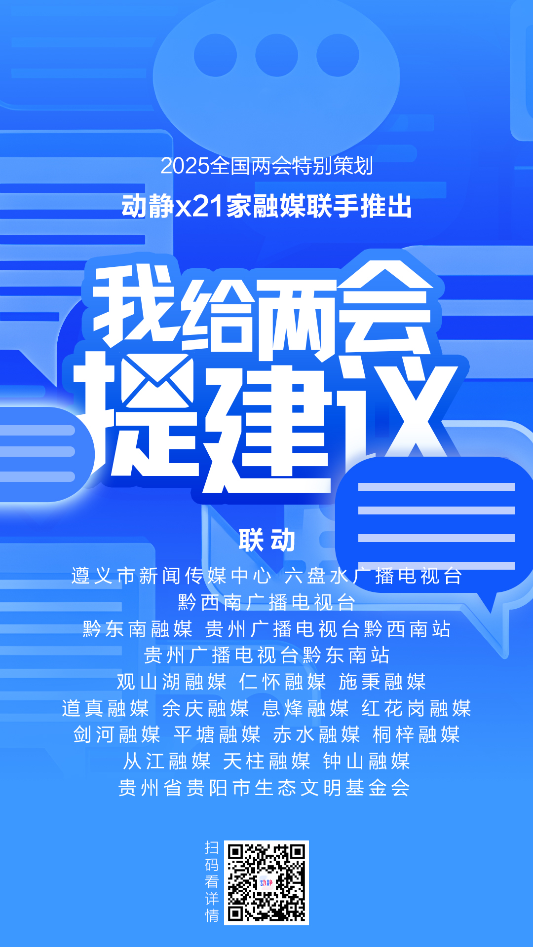 在全国两会期间,动静号放大招!由动静牵头推出《我给两会提建议》联动策划,共有21家动静号参与其中,强强联手,通过紧扣全国两会的民生议题,激发群众参与热情,5期专题稿件在动静新媒体矩阵进行传播,其中3期登上《贵州新闻联播》《动静新闻》IPTV等大屏,值得注意的是还得到了B站资讯首页大图推荐加持,真正实现了宣传效果与网络影响力的双赢。