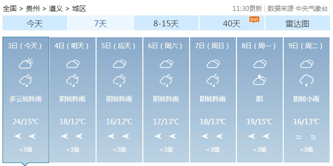 今天(4日)夜间到5日白天,贵州全省阴天间短时多云,夜间有阵雨,南部局地有中到大雨并伴有强对流;