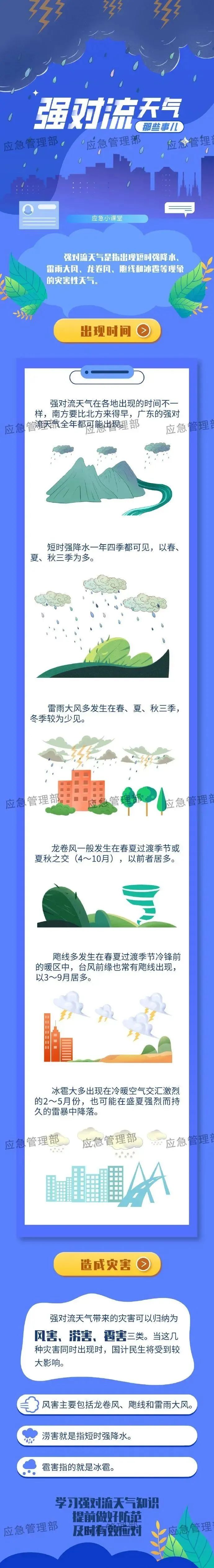 1.政府及相关部门按照职责做好防短时暴雨、防雷、防大风应急抢险工作,气象部门适时开展人工防雹作业;