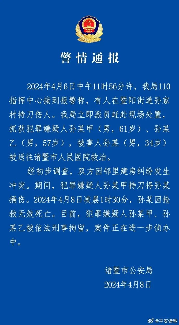 近日,浙江一名律师遇歹徒袭击身亡引发关注。8日,微博@平安诸暨发布警情通报,通报全文如下: