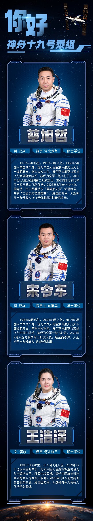 神舟十九号航天员乘组:蔡旭哲、宋令东、王浩泽