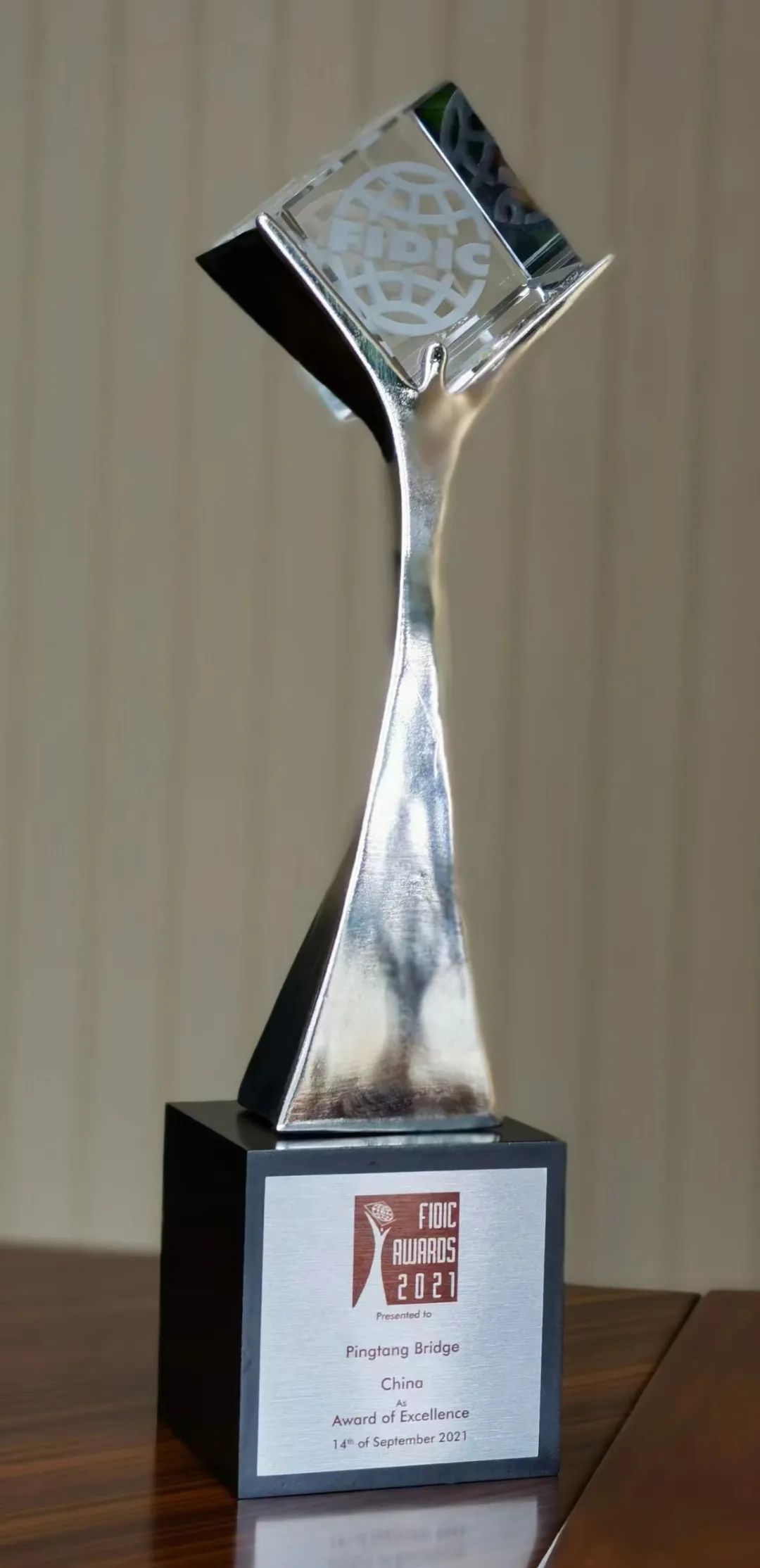 2022年年底,国际桥梁与结构工程协会(IABSE)在瑞士苏黎世举行2022年杰出结构奖颁奖典礼。“在苏黎世,国际桥梁与结构工程协会颁奖典礼上,主持人宣布平塘大桥荣获最佳基础设施奖的时刻,我兴奋地振臂一呼!这是平塘大桥荣获的第三个世界级桥梁奖项,在2021年还获得了美国世界桥梁大会的古斯塔夫奖和国际咨询工程师协会的全球杰出项目奖。”平塘大桥是继港珠澳大桥之后唯一实现包揽三大奖项的国内桥梁项目。