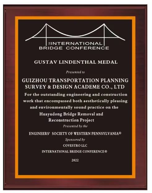 2022年,美国国际桥梁大会的评委又一次把古斯塔夫奖颁给了贵州桥,授予“古斯塔夫斯·林德撒尔奖”。花鱼洞大桥,一座跨径只有180m的拱桥,凭着精巧的构思和聚焦环保生态的创新工艺,拿了大奖。评委也感叹,又是个贵州桥!