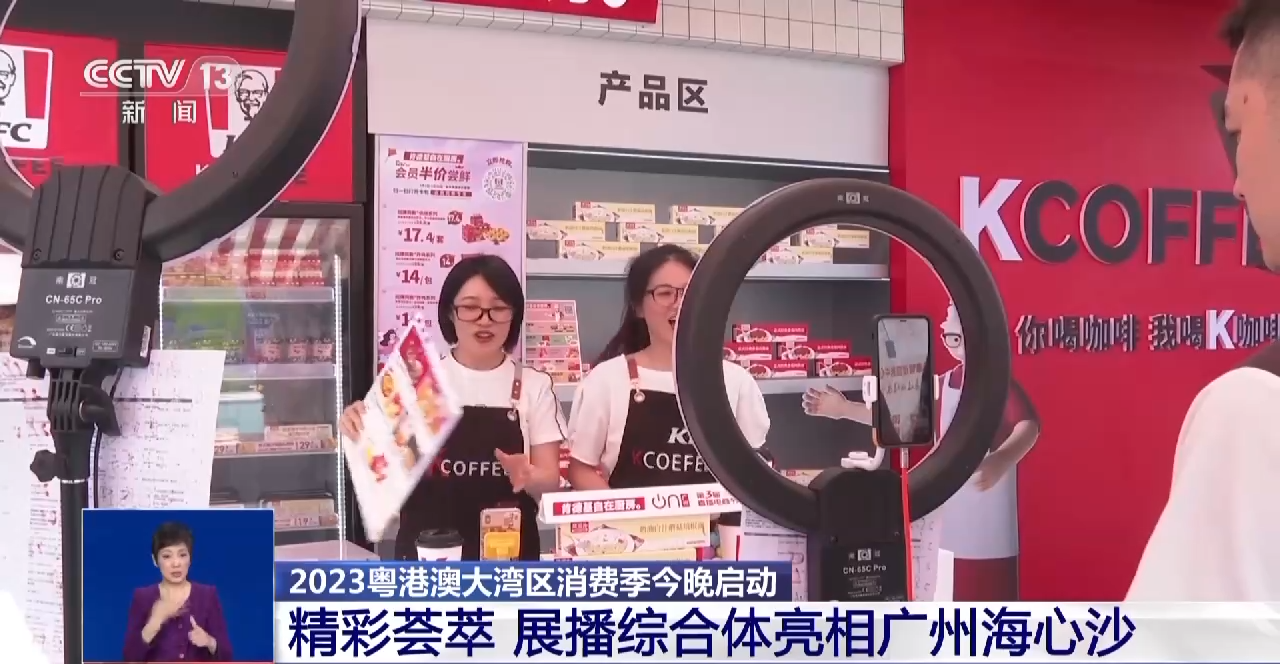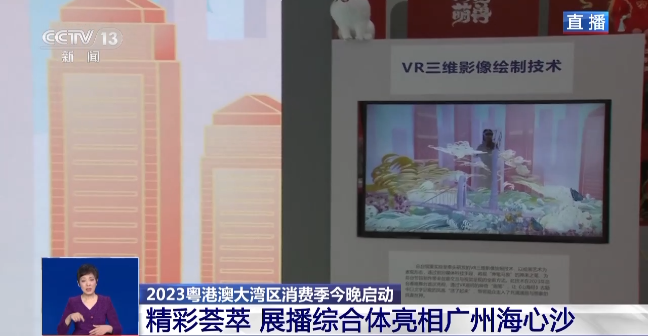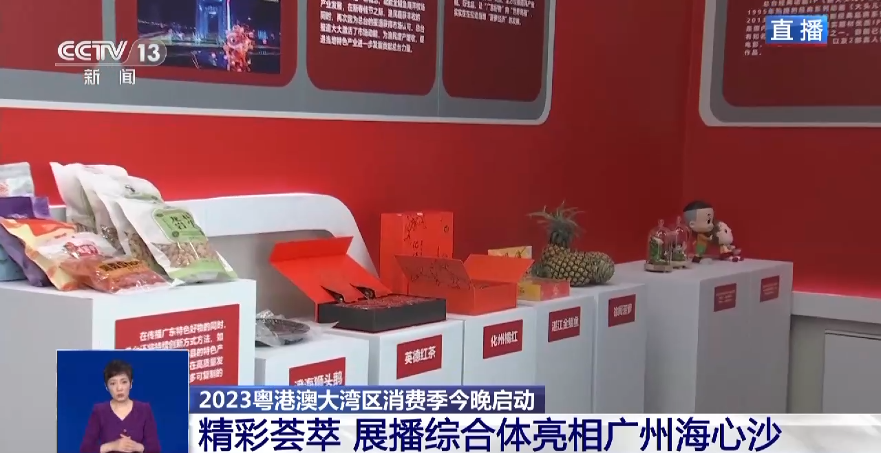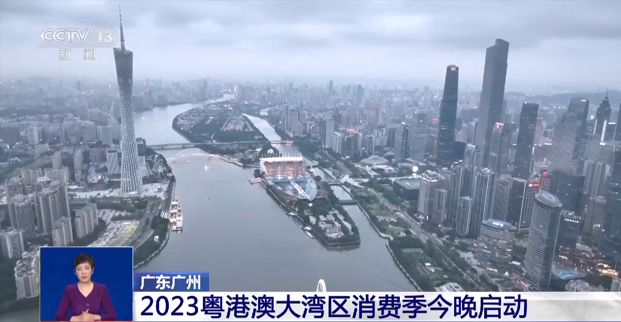 总台记者 罗平章:在广州海心沙亚运公园,今天晚上8时,2023粤港澳大湾区消费季将在这里启动。这次消费季活动有三个“新”。