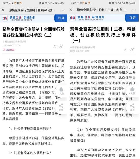 多角度、全方位、专业化解读的原则:贵州证监局在新闻媒体开设《聚焦全面实行注册制》专题,围绕全面注册制改革、上市公司高质量发展、投资者教育和保护等内容持续发布新闻素材,引导群众全面了解股票发行注册制,持续做好贵州资本市场新闻宣传与舆论引导工作。