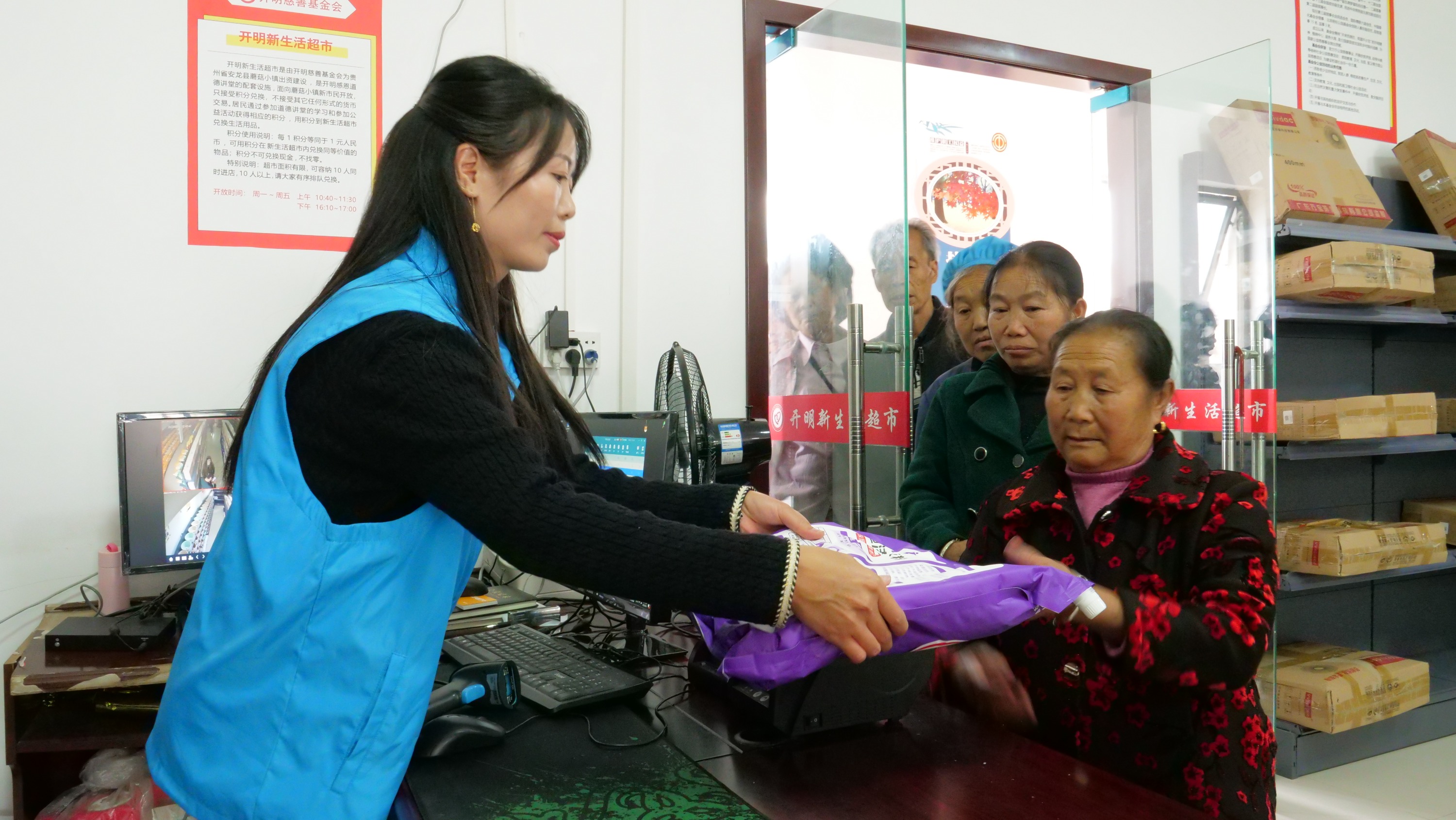 在春潭街道天菇社区“文明积分”超市,新市民们有序排队,用“文明积分”兑换大米、卫生纸、洗衣粉等生活用品。记者了解到,天菇社区新市民参与志愿服务和道德讲堂公益讲座、自觉践行移风易俗等均可兑换积分,凭积分可在“积分超市”兑换物品,激发新市民主动投身社区文明建设,通过“小积分”兑出“大文明”。