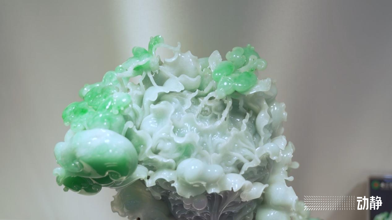 下面这款翡翠白菜造型的雕刻作品,重约25公斤,名为“汇聚百财”,历时近5年雕刻而成,价值人民币8800万元。