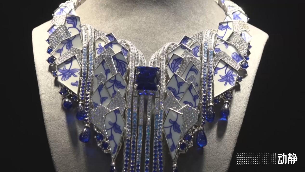 这款“九天瓷川”项链,设计灵感来自于唐诗《望庐山瀑布》中的“疑是银河落九天”,项链由瓷片和蓝宝石镶嵌而成,价值人民币3000万元。