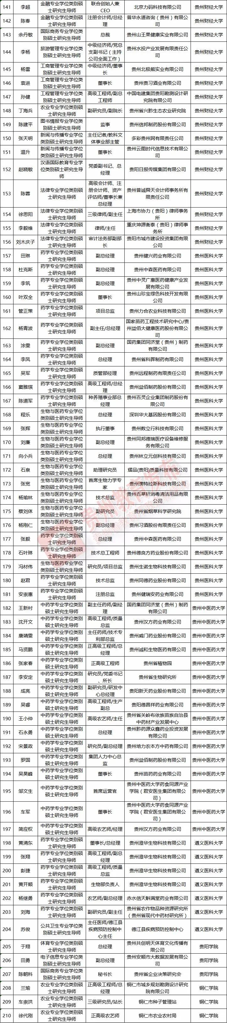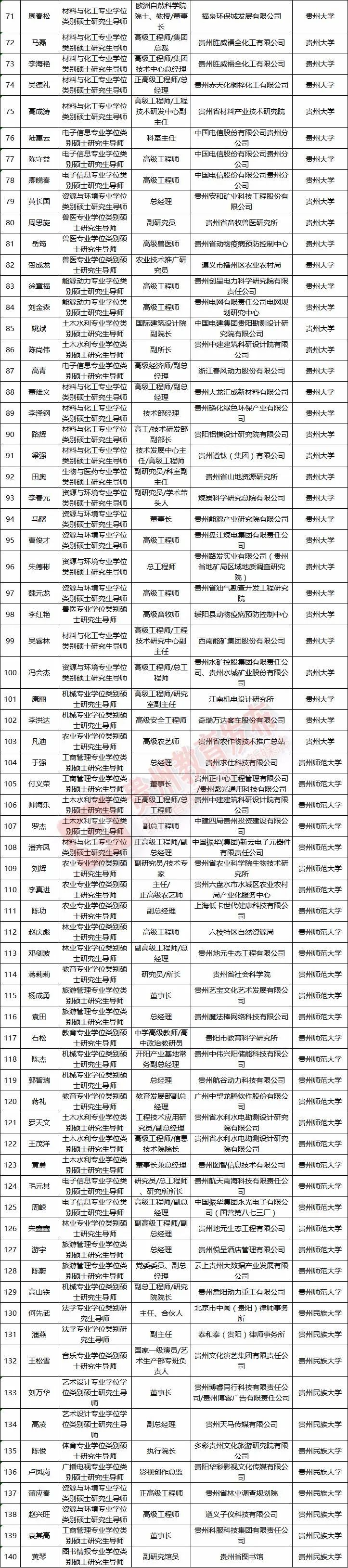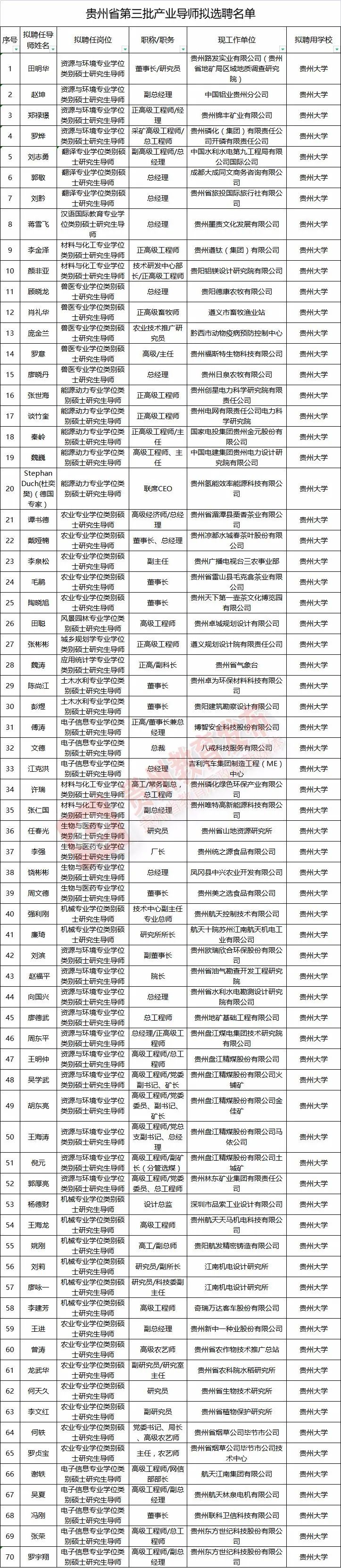 贵州省第三批产业导师拟选聘名单